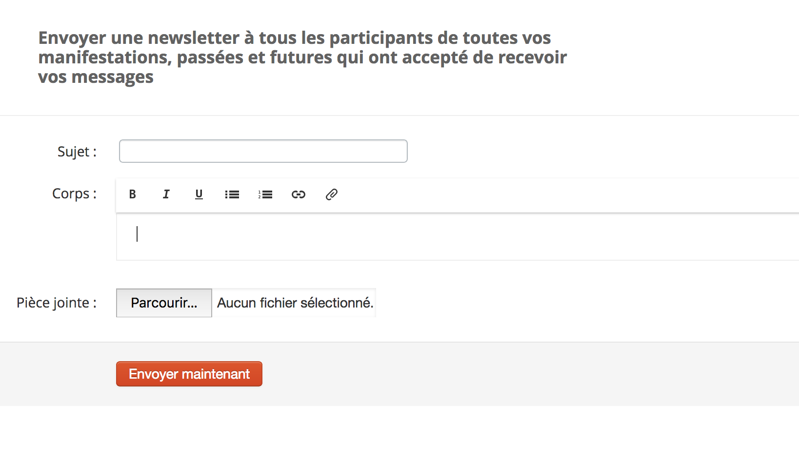 ▻ Vous arrivez ensuite sur l'éditeur de messages. Vous pouvez rédiger et enrichir votre message avec les options proposées : Gras, Italique, Souligné, listes, liens à cliquer et même pièce jointe.