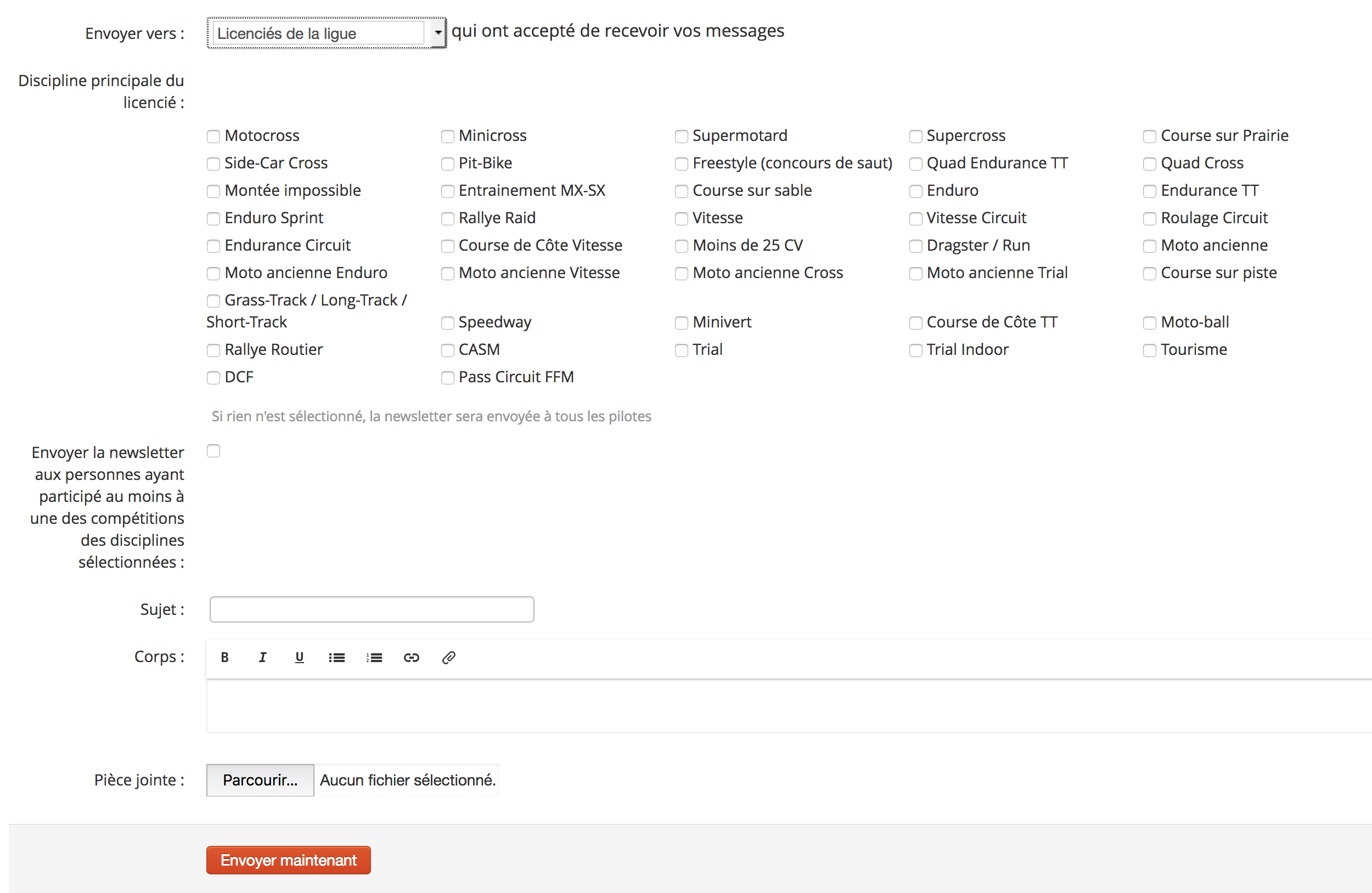 ▻ Les ligues peuvent envoyer des newsletters aux clubs dépendant de leur territoire géographique ou à leurs licenciés et ce par discipline.